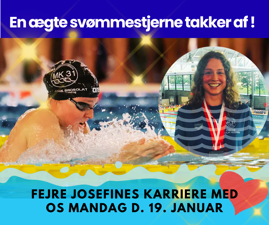 Efter mere end 15 år på 1. holdet i Svømmeklubben MK31 har Josefine B. Pedersen valgt at stoppe sin lange og succesfulde svømmekarriere. Ingen anden svømmer har repræsenteret Svømmeklubben MK31 på højeste niveau igennem så lang en karriere. Josefine har haft danske junior rekorder og senior rekorder både individuelt og med holdkapper. Derudover har Josefine repræsenteret Danmark mange gange både som junior og senior, ikke mindst hendes 3 gange deltagelse ved EM kortbane i 2017, 2019 og 2025.